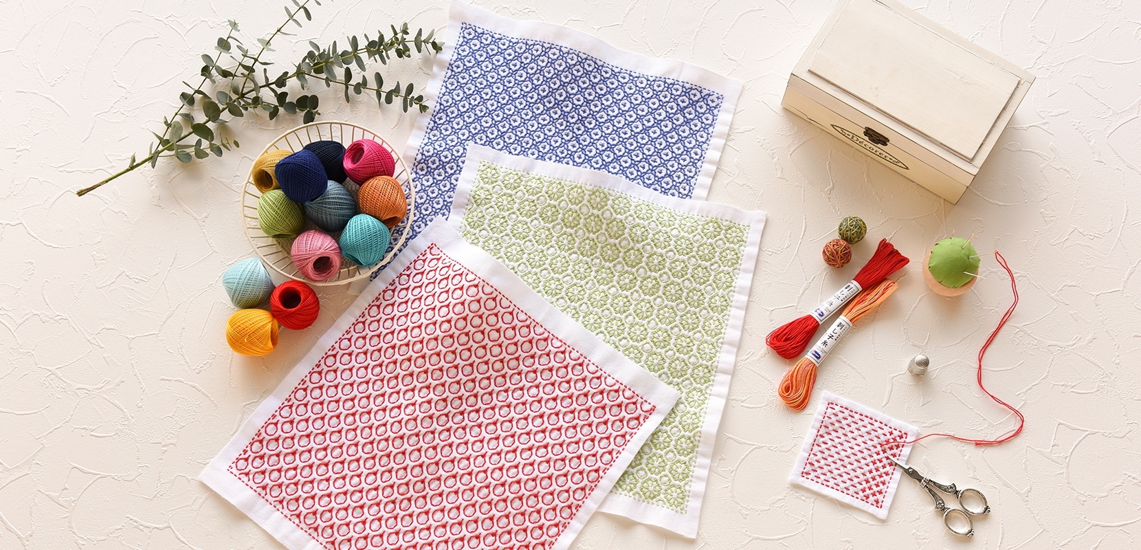 布に線を描くように刺しゅうをする「刺し子」は、日本に古くから伝わる伝統的な刺しゅうです。